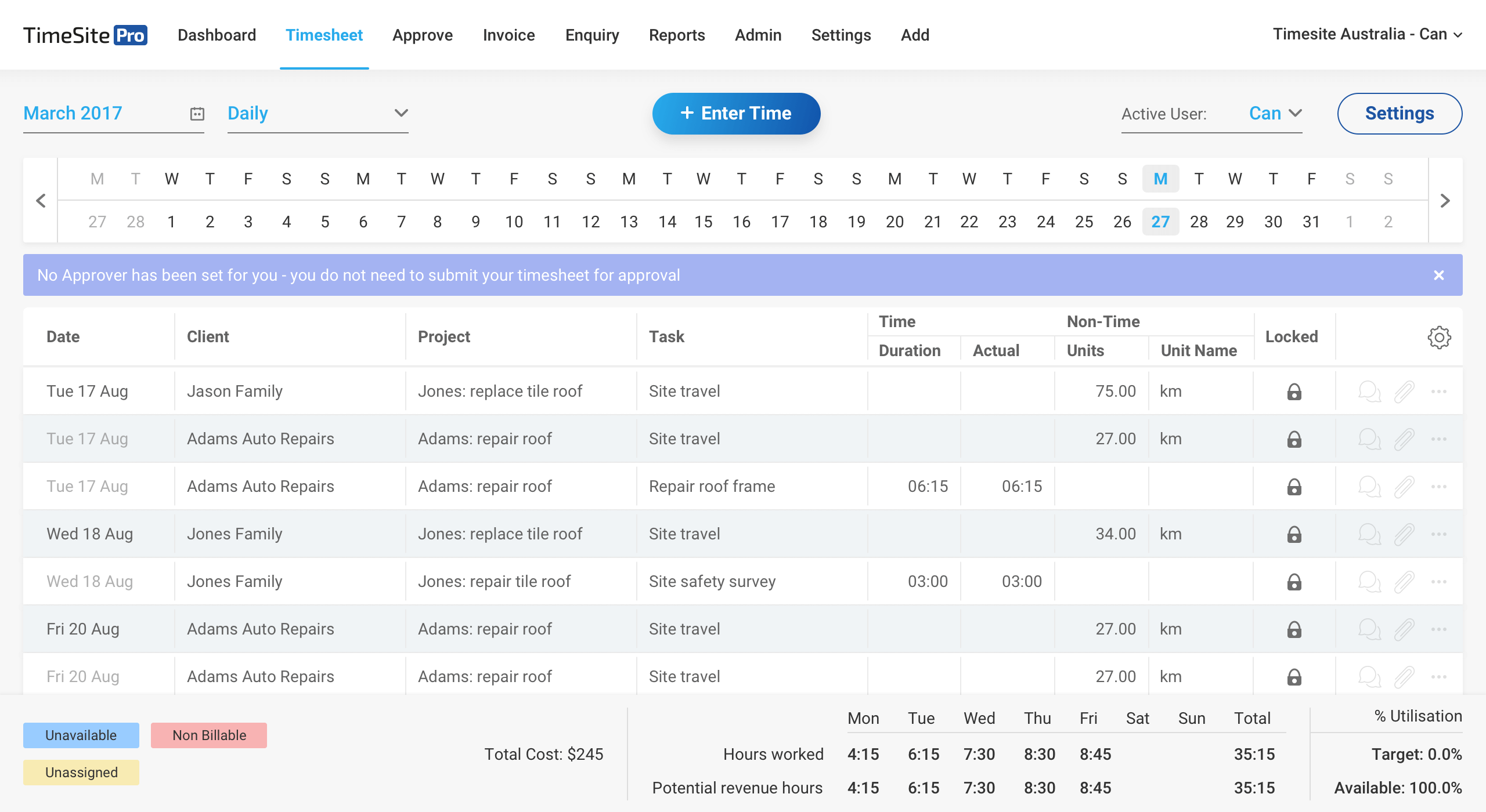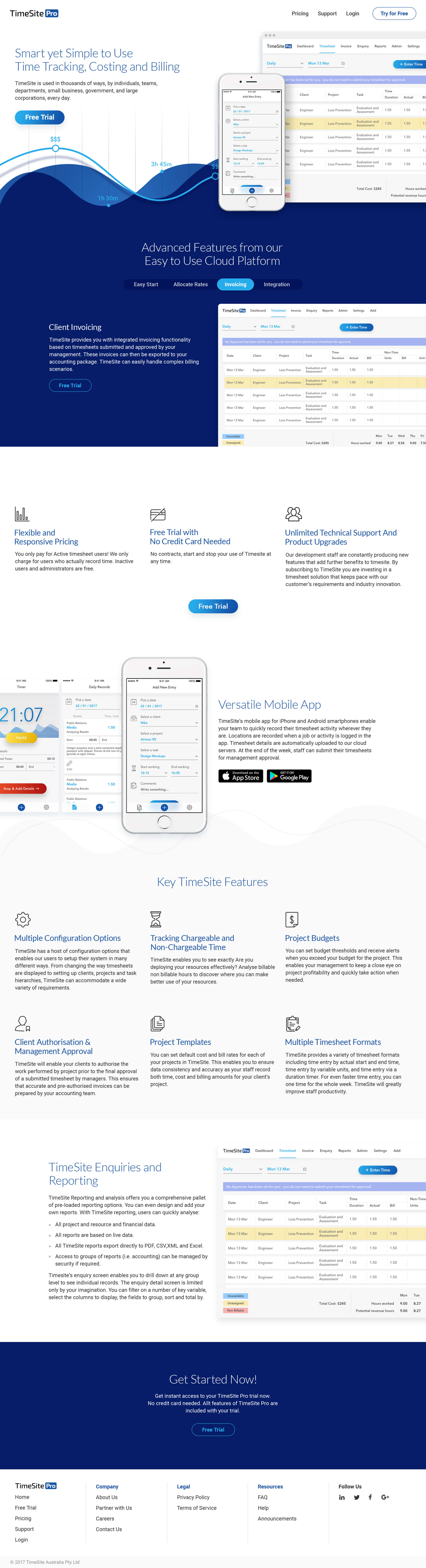 TimeSite is a digital product that is used to track time, costings and billings. It’s used by teams, departments, small businesses, governments, and large corporations every day. I’ve been asked to undertake the new branding of the Pro version, new website, and most importantly, redesign of the existing web app with accompanying mobile and tablet app.See it live